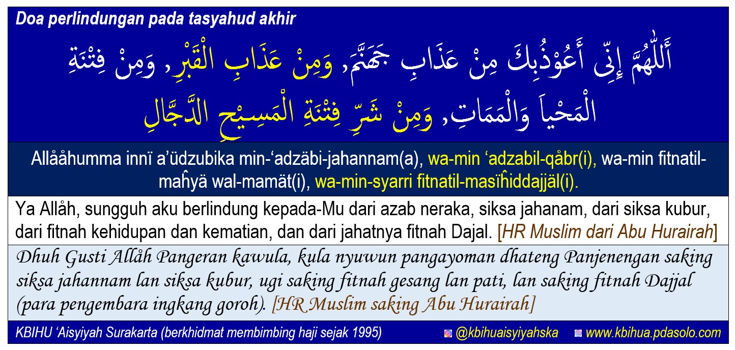 Setelah sujud kedua pada rakaat keempat, kita bangkit sambil takbir dan mengambil posisi duduk tawarruk (posisi H) untuk melakukan Tasyahud akhir. Bacaan doa terdiri dari tasyahud akhir, shalawat dan doa mohon perlindungan sebagaimana diajarkan Rosulullah SAW. Tasyahud akhir dan shalawat bacaannya sama persis dengan Langkah 9a dan 9b, dilanjutkan doa sebagai berikut