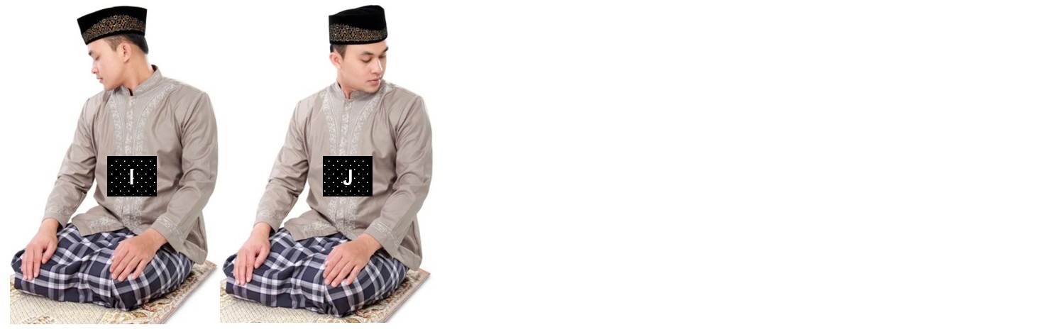 Shalat diakhiri dengan salam menoleh ke kanan (posisi I) dan ke kiri (posisi J)