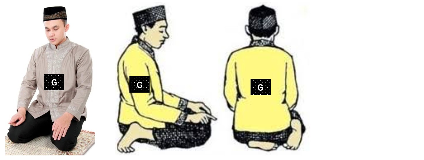 Setelah sujud kedua pada rakaat kedua, kita bangkit sambil takbir dan mengambil posisi duduk iftirasy (posisi G) untuk melakukan Tasyahud awwal. Jari telunjuk diarahkan ke kiblat. Bacaan doa terdiri dari tasyahud awal, shalawat dan doa yang diajarkan Rosulullah SAW